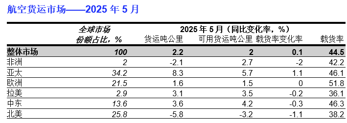 亚太航空公司5月航空货运需求同比增长8.3%,在所有地区中增速最快。运力同比增长5.7%。